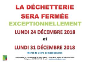 FERMETURE EXCEPTIONNELLE DECHETTERIE FETES DE FIN D’ANNEE 2018